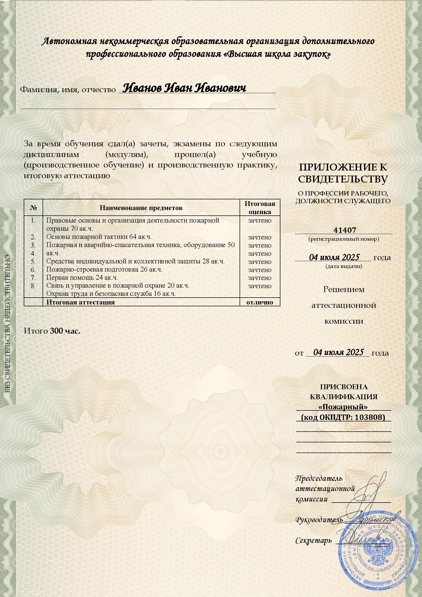 Профессиональное обучение, 300 академических часов, 8 модулей: законодательство и нормативные акты в области пожарной безопасности, тактика тушения пожаров и проведение аварийно-спасательных работ, устройство и использование пожарно-технического вооружения, оказание первой помощи. Онлайн-обучение в в Ижевске с итоговой аттестацией.