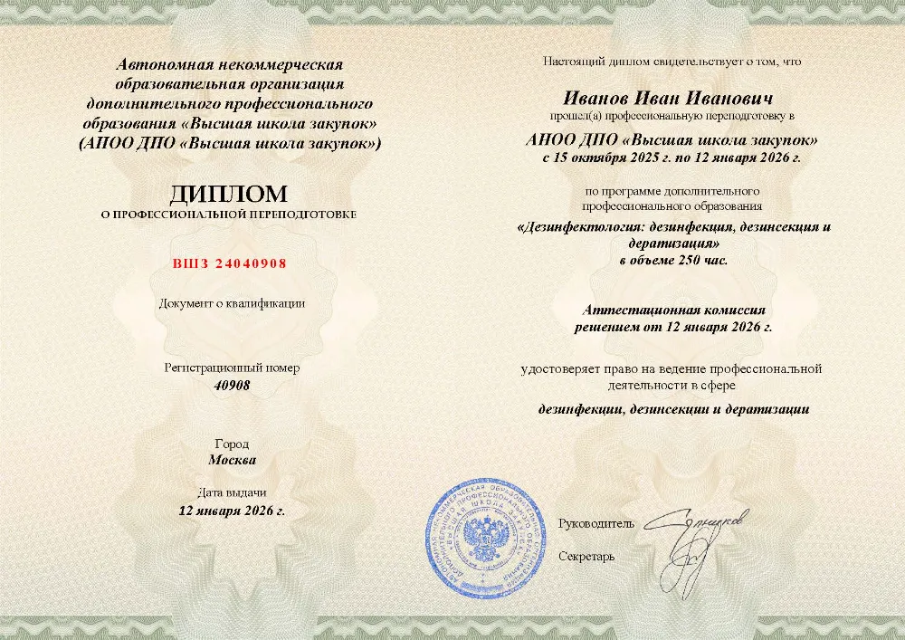 Диплом оформляется на следующий день после успешной сдачи аттестации. Обучение проходит дистанционно в индивидуальном темпе, итоговый тест включает до 10 вопросов, время не ограничено, попытки можно повторять. Запись в ФРДО производится в день выдачи документа.