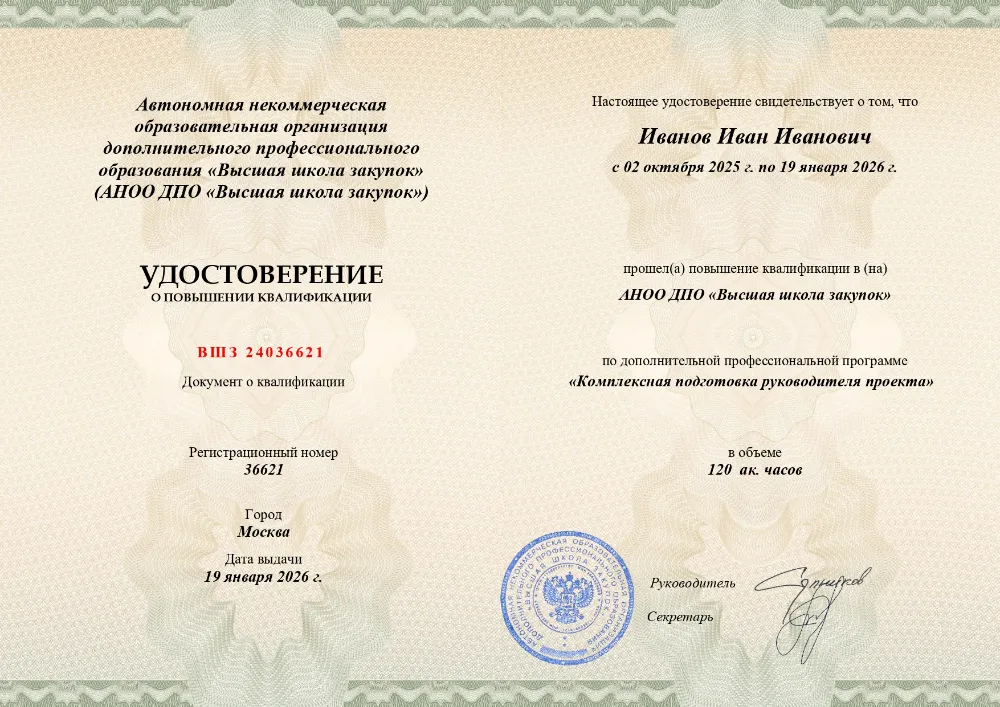 Программа повышения квалификации объёмом 40 академических часов включает три взаимосвязанных модуля. В первом разбираются понятие, сущность и формы коррупционных проявлений. Второй посвящён методикам оценки коррупционных рисков на всех этапах закупочного цикла. Третий модуль раскрывает вопросы юридической ответственности за коррупционные нарушения и содержит анализ правоприменительной практики. Обучение проходит полностью в дистанционном формате, что даёт возможность специалистам в Ижевске, повысить квалификацию без отрыва от основной деятельности. По итогам мониторинга цен на рынке дополнительного профессионального образования установлено: это самое экономически выгодное предложение среди всех аналогов по данной тематике. Итоговая аттестация представляет собой лёгкое тестирование (до 10 вопросов) — без ограничения по времени, с правом неограниченного числа попыток. Практика показывает, что 99% слушателей справляются с первого раза. Рефераты, дипломные работы и устные защиты не требуются. Удостоверение установленного образца выдаётся уже через 1 день после успешного завершения курса, а сведения о нём вносятся в ФРДО в день выдачи — это обеспечивает оперативную проверку документа со стороны работодателя.