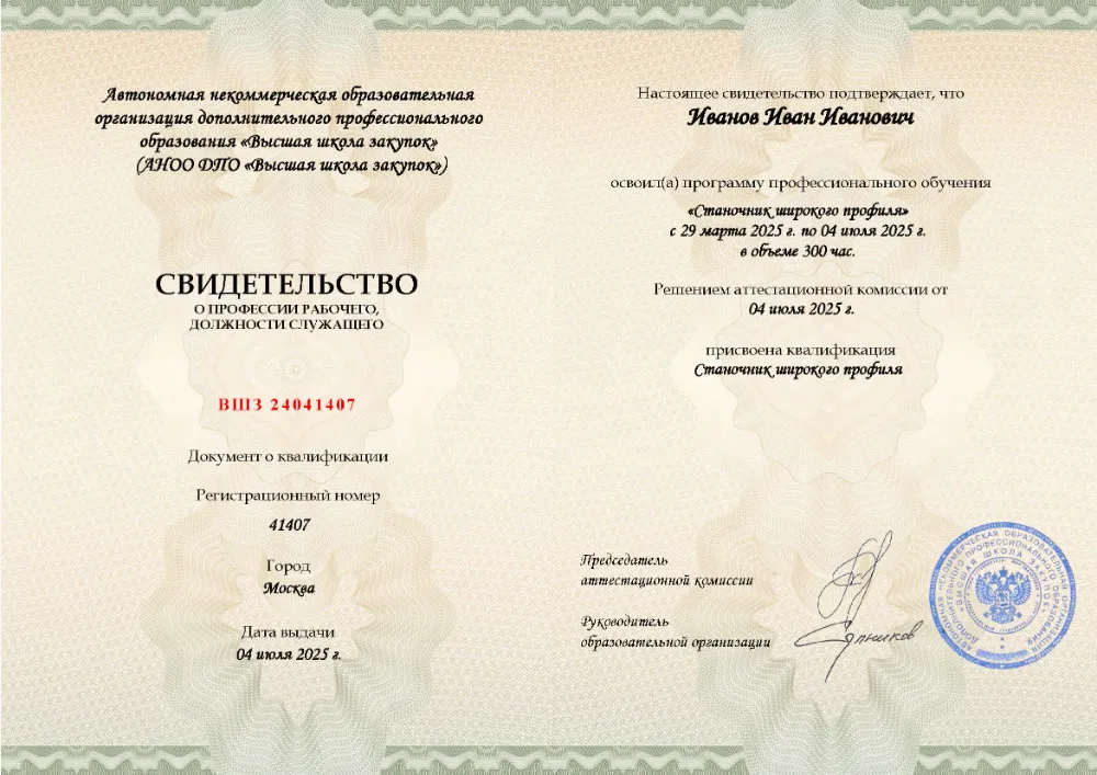 В «Дипломикс». По результатам мониторинга рынка наша программа профессионального обучения признана самой низкой по цене среди всех учебных центров, реализующих подготовку по данному направлению. Общая продолжительность — 144 академических часа. По завершении вы получаете свидетельство с внесением данных в ФРДО.